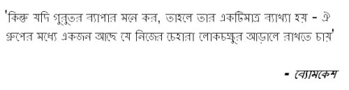 Chitrachor does not feature a spectacular modus operandi or a suave villain and might therefore get overlooked by readers listing their favorite Byomkesh stories. I would disagree strongly. I think it ranks among the top four or five Byomkesh stories that Saradindu wrote.