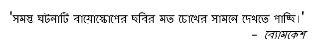 By the time Saradindu Bandyopadhyay has Byomkesh Bakshi mention these words in Chorabali, he has already solved the mystery of the disappearance of Harinath, teacher to the daughter of Himangshubabu. Saradindu does not deceive the reader by hiding details or springing surprises at the end of the story. Every single clue that Byomkesh uses to solve this fascinating case is presented with integrity and honesty to the reader. Saradindu even provides extra clues through Ajit. And when the reader is near the end of the story when Byomkesh reveals the sinister and sad chain of events at the Chorabali Estate, readers can analyze their own powers of deduction and find out how much of the story (from 0% to 100%) they could figure out from the clues themselves.